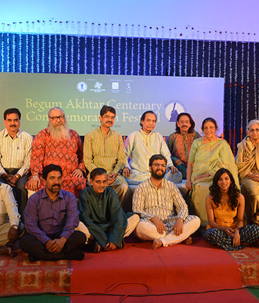 A group photograph featuring the Begum Akhtar Centenary Project team members, artists who participated in the festival as well as representatives of IGRMS