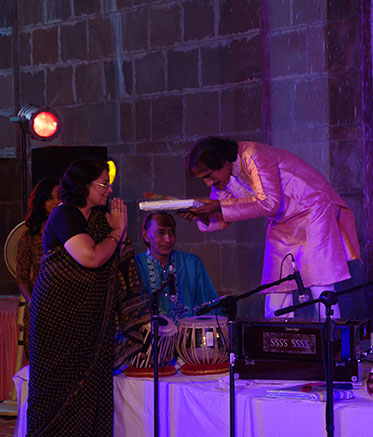 Ustad Ghulam Sabir Khan of the Moradabad gharana provided melodious accompaniment on the Sarangi