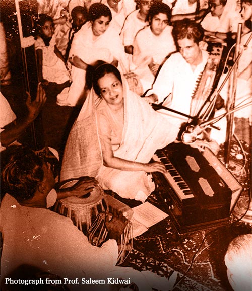 Begum Akhtar’s senior disciples Shanti Hiranand and Anjali Banerji indicate that she was completely open & generous with her knowledge and eagerly gave everything that she could. This was mentioned in contrast to the reputation that at least some gharanedar ustadsof the time had of making a living from teaching and, at times, giving limited information for maximum financial return. Begum Akhtar often told Shanti Hiranand: “Har kuza ni’mat!” (“Every vessel is a blessing!”)