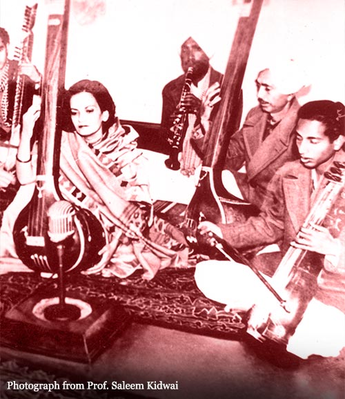 Though Begum Akhtar intensely loved her role as Begum sahiba of Mateen Manzil, she would tire of it soon and crave for something more. Sayeeda Raza reveals that during the initial years of marriage, “she did miss singing but she missed whisky more!” Contradictive narratives exist around the absence of Begum Akhtar from the music scene after her marriage and her return to singing as a way to overcome depression of her mother’s death. However, historian Saleem Kidwai says that Begum Akhtar stopped performing only for a little while & found respectable avenue to perform through All India Radio. However, throughout her life, she never performed publically in Lucknow following her marriage to Abbasi sahib. In his doctoral work on Begum Akhtar, Robert Ollikkala opines that Begum Akhtar was trying to adapt to the changing conditions of the society. She was aware that being part of a respectable family meant that it would be frowned upon to perform as it was still considered to be the domain of baijis. He believes that Begum Akhtar helped negotiate the change, but suffered for it.