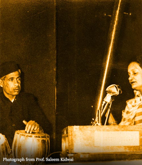 Munne Khan was probably the only constant in Begum Akhtar’s famously dynamic life. He was her accompanist on the tabla almost throughout her professional sojourn. They journeyed together through the various phases of her life as an artist – from successes & celebrity as Akhtaribai Faizabadi to the revere of Begum Akhtar.