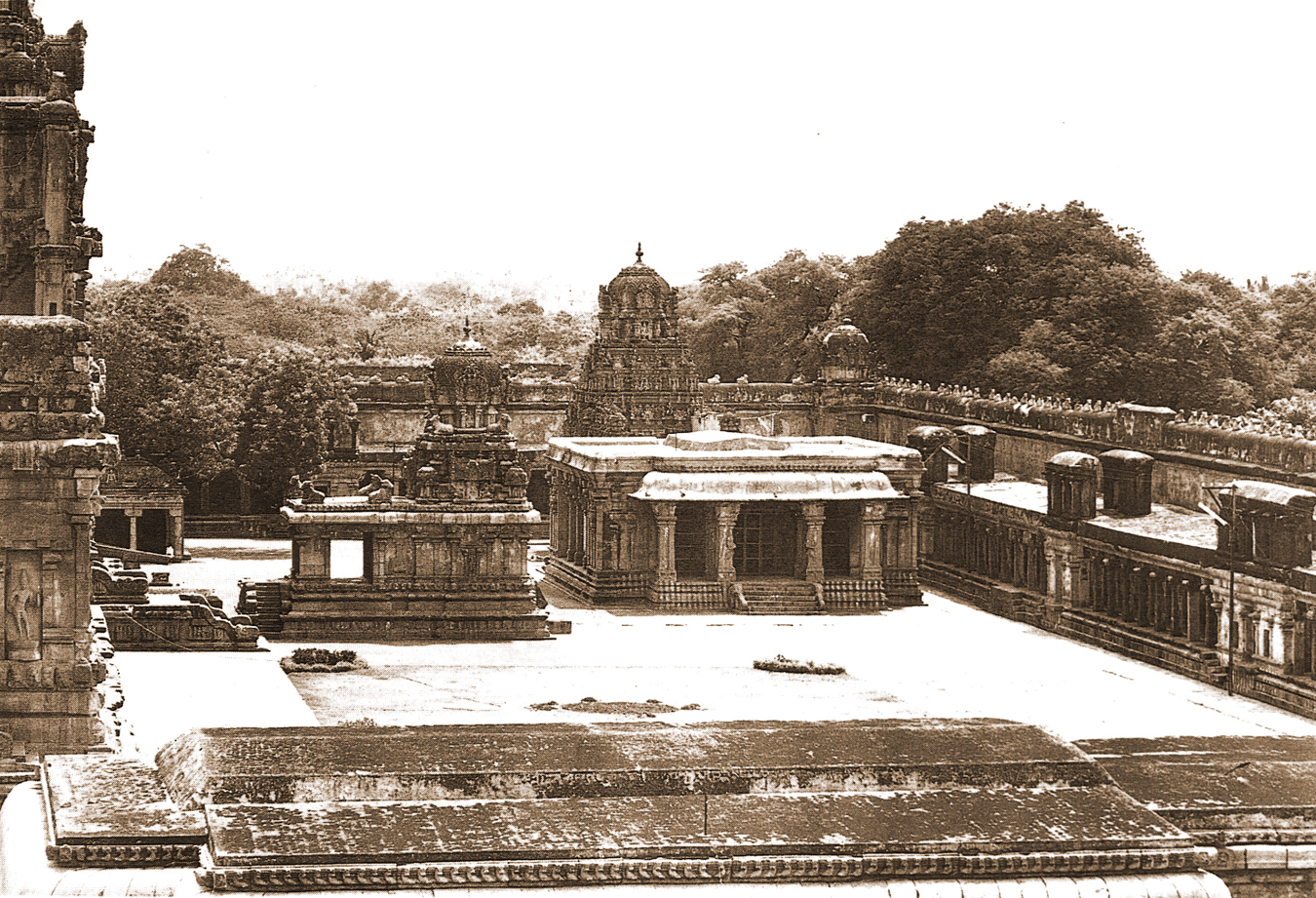 Caṇḍikēśvara and Subrahmaṇya shrines, from east.