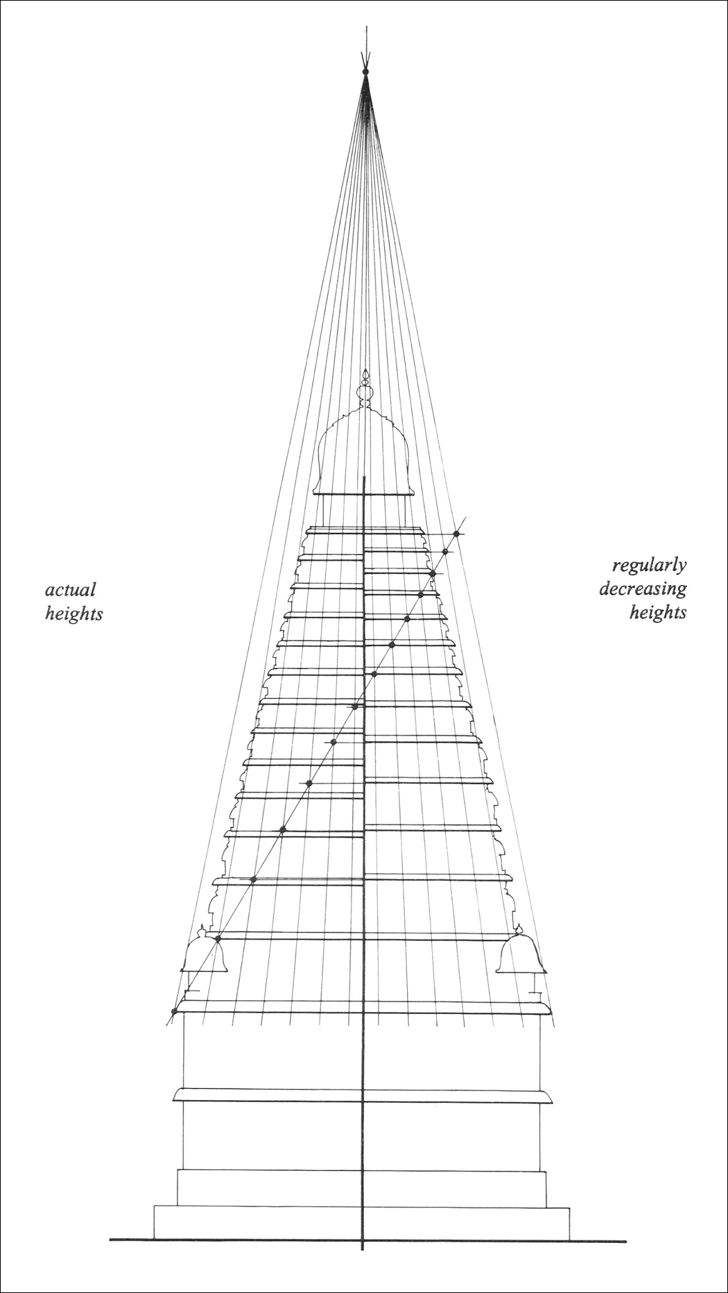 Heights of tower storeys.