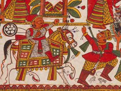 देवनारायण फड़ परम्परा Devnarayan Phad Tradition देवनारायण के कारनामें छोछु भाट का दीयाजी जोधका को लालच देकर देवनारायण से भिड़वाना
