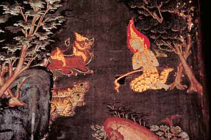 The Bodhisatta offering his life to save the cubs, the Thai version He bowed his head out of reverence for his guru who had exemplified the supreme sacrifice. Pasya