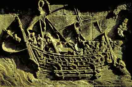 fresh life. But soon, he received a lucrative offer from some rich merchants, who had commissioned a ship and were looking for an experienced ship captain. First, he turned down the offer, as he was blind. But when requested repeatedly, he accepted the offer. Finally, he became the captain of the ship, which sailed to a foreign port. But after seven days, it was caught in a terrible storm. To save the ship, Supparka drove it to several oceans, namely, Khuramala, Aggimala, Dadhimala, Nilavannakusamala, Nalamala and Valabhamukha. Yet, he could not bring it to the shore. When the people on board were losing heart and all their hopes were being withered away, he conducted the Sacchakiriya (СAct of Truth) by reciting, Уif he was righteous, the ship shall be savedФ. Next day, the ship sailed back to the port of Bharukaccha and was anchored there, safely. See Supparaka Jataka Jataka Pali No.463. |