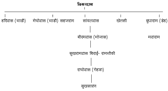 १. हेमदास, २. खेतसी, ३.गोरधनदास, ४. हरिदास ( चाडी), ५. मेघोदास ( चाडी), ६. हरकिशन ७. बुधाराम, ८. लाडूराम, ९. भैरुदास, १०. सांवलदास, ११. टीकूदास, १२. शोभाराम, १३. दूधाराम।