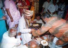 वधू के परिवार का पुरोहित यज्ञ करता था और चार या आठ विवाहित स्रियाँ नृत्य करती थीं।